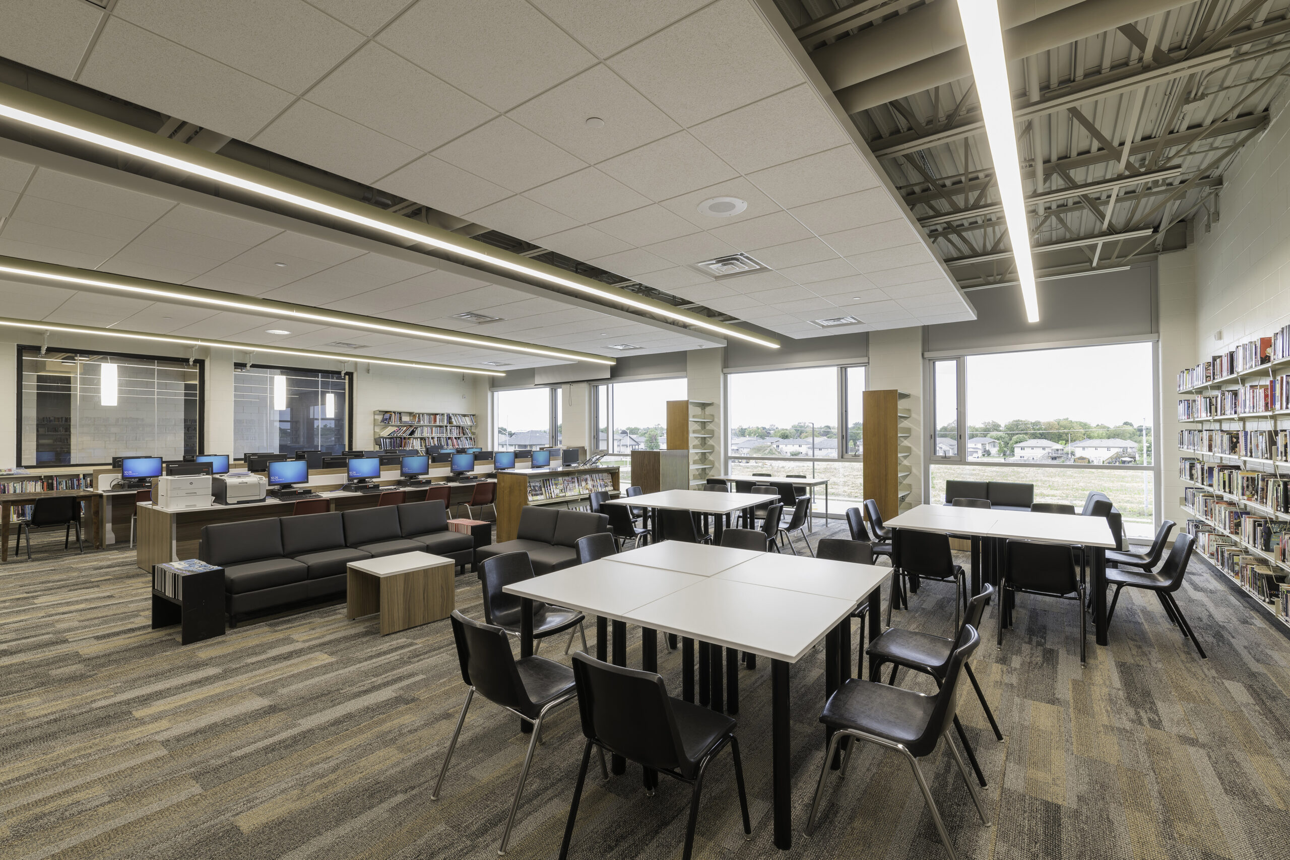 This is the first Ontario high school designed to respond to a post-pandemic environment. The efficiency of the design resulted in the gross area of the school being 20% under the Ministry standards without compromising any of the program spaces. The Library area was kept to a minimum to allow a bigger student learning commons to be developed, which will facilitate physical distancing. By starting on site in late 2020, the contractor had 20 months to complete the project.