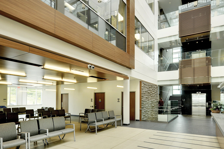 Generous windows, skylights, atrium spaces, and stairs offer staff and visitors access to daylight and views, thus creating welcoming environments with a friendly, non-institutional feeling.