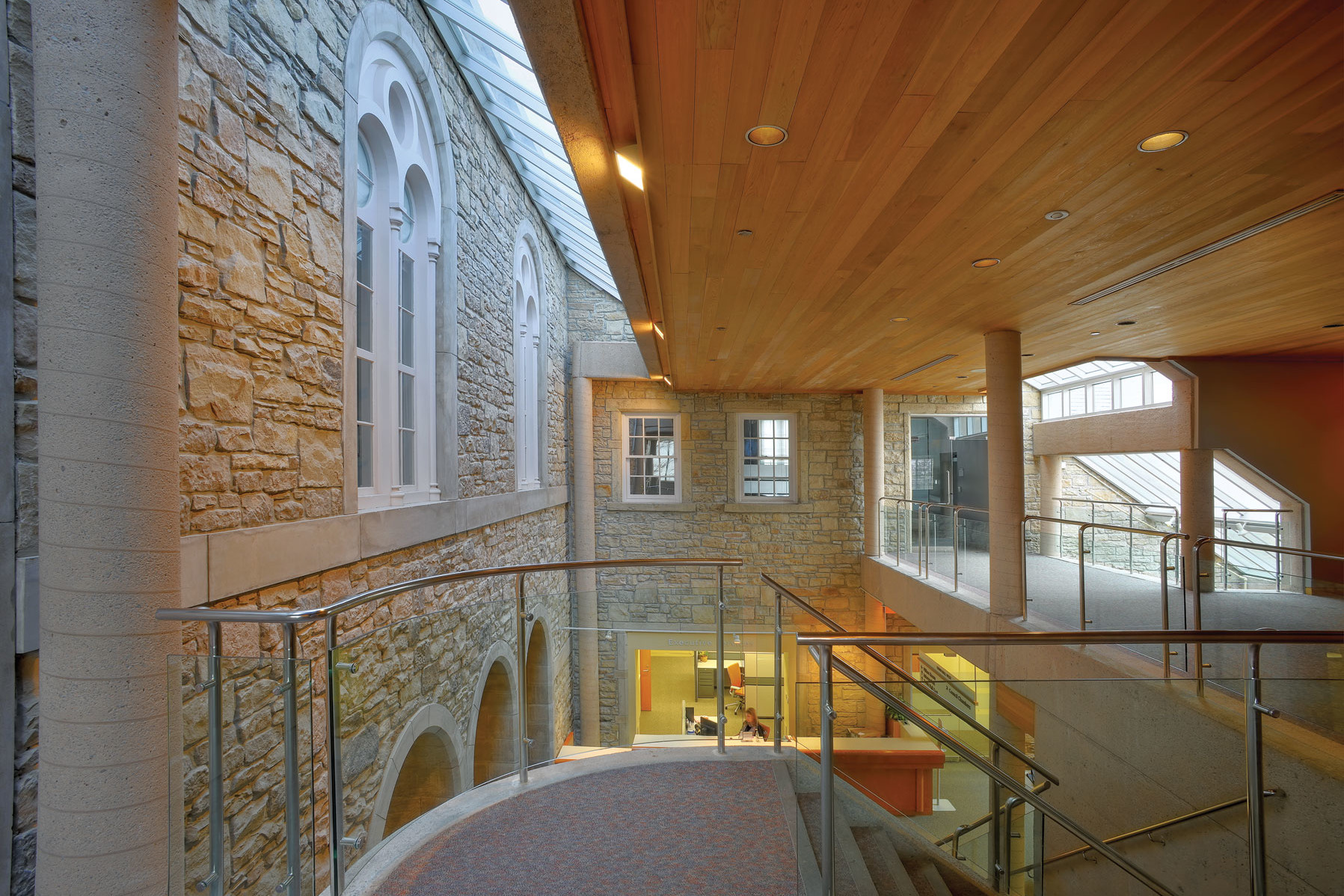 The project introduced a new skylit atrium along the east side of the heritage building allowing the building’s east façade to be exposed within the new public space of the facility. Completely new mechanical systems were introduced and included the use of spare heating/cooling capacity from an adjacent campus building to serve the building’s needs. The new facility included seven tiered lecture halls, and two classrooms, student break-out rooms, PhD and MSC program space, faculty offices, a computer lab, a video conference facility, and administrative space. The project was successfully completed on time and on budget, and won three awards of excellence.