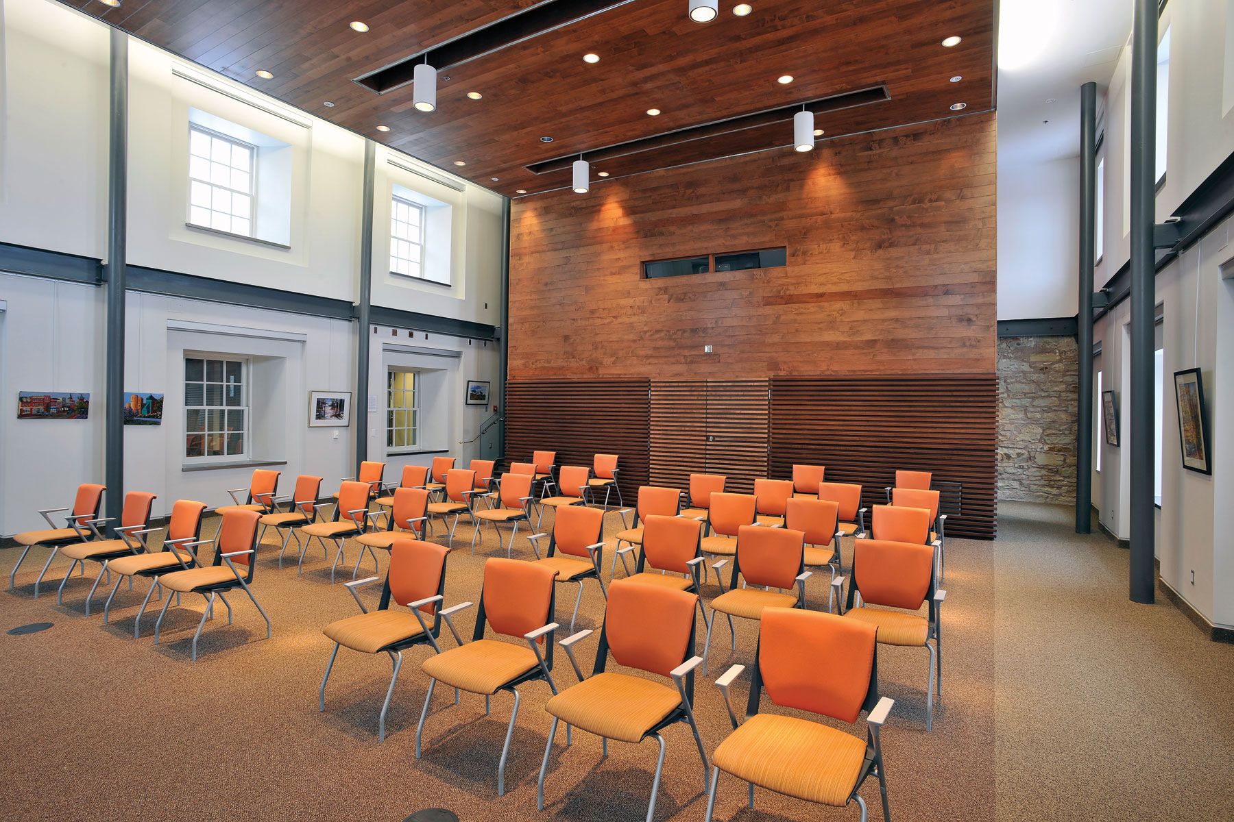 The community meeting room systems include video projection and audio reinforcement to support corporate events, meetings, workshops, seminars or smaller-scale receptions.